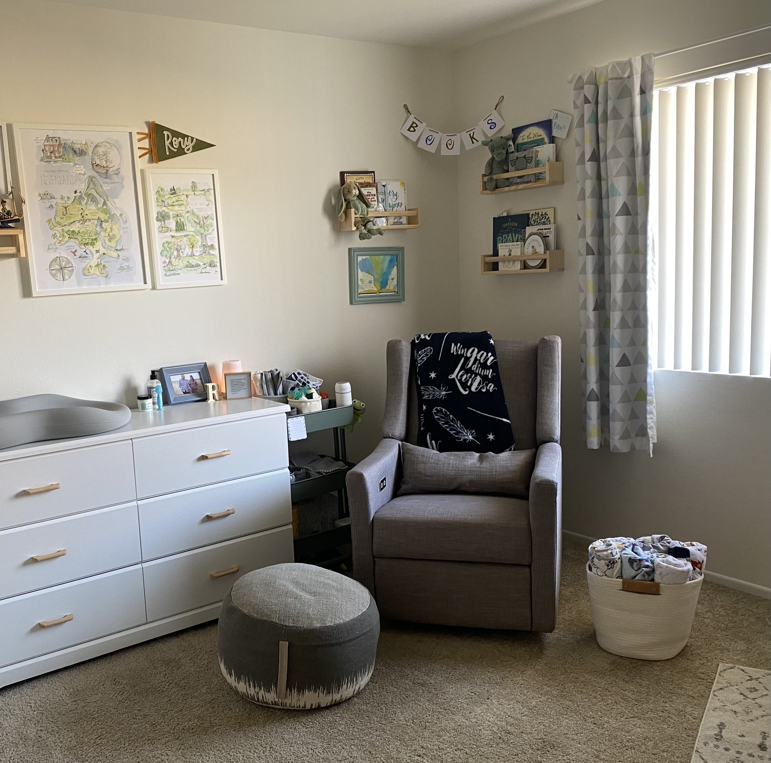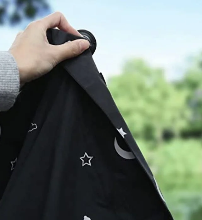 Black Out Curtains - You want that room as dark as possible. The regular curtains alone weren’t enough for us. This one that suctions onto the window itself is genius. It fits under our blinds and the cuter curtains. It’s also perfect for travel!